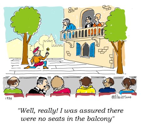 Whimsy Balcony (1934) Image 04/12/2025 admin Prints are signed, and limited to ten in number Note: the original drawing is not coloured KEYWORDS: shakespeare, theatre, romeo, juliet, audience