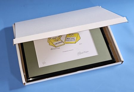 Prints are A4 size and optionally mounted in a simple black frame. No more than ten signed prints of any one drawing will be produced.