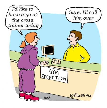 Awkward moments, Wordplay Trainer (1223) Image 22/04/2022 admin Prints are signed, and limited to ten in number Note: the original drawing is not coloured KEYWORDS: gym, trainer, coach, training